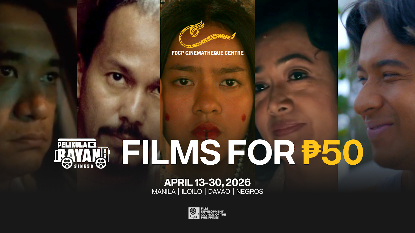 Following this, Sine 50: Pelikula ng Bayan showcases Filipino stories shaped by quiet struggles and the realities of Philippine society. The screenings are offered for only PHP 50 at the FDCP Cinematheque Centres in Manila, Iloilo, Davao, and Negros from April 13 to 30, 2026.