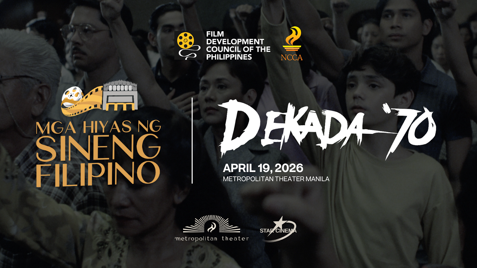 The screening features Dekada ‘70, directed by Chito S. Roño, based on the novel written by Lualhati Bautista, on April 19, 2026. It is open to the public free of charge.